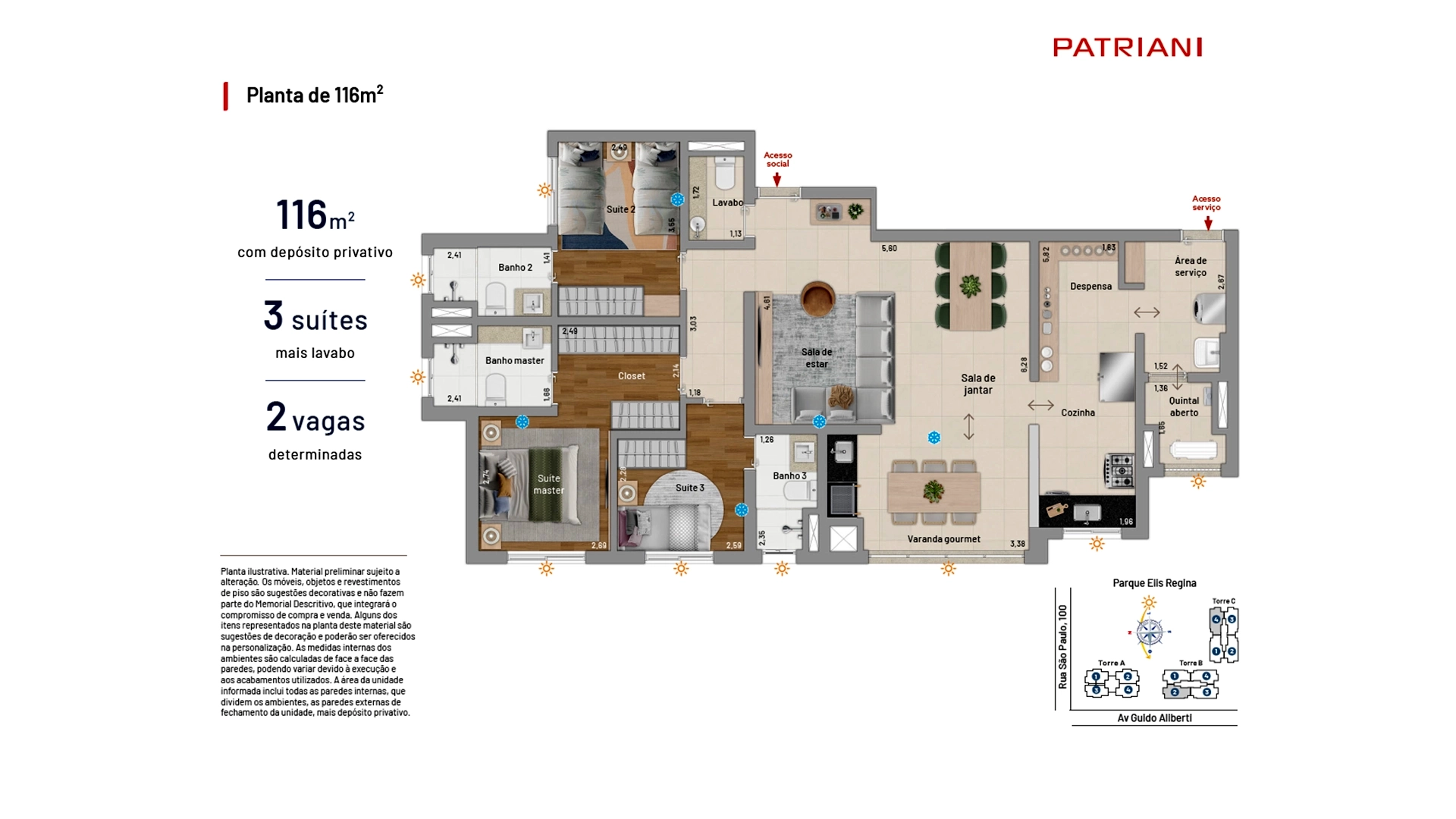 Torre com plantas de 116m²