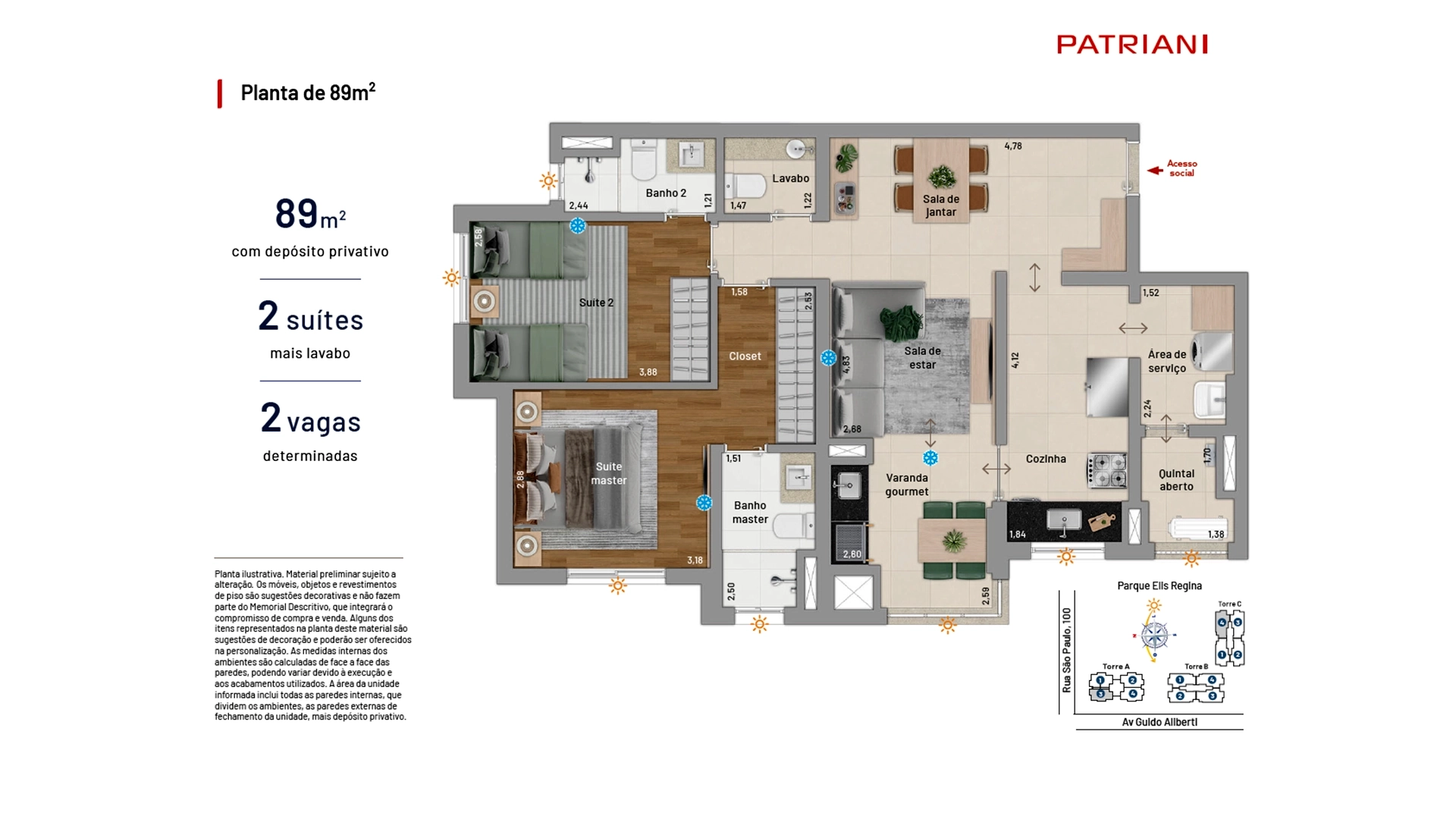 Incluindo depósito privativo 3m²