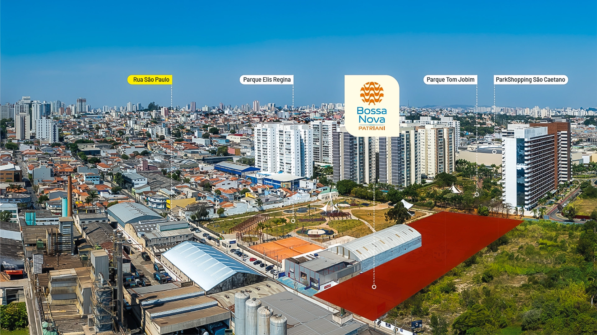 O “Bossa Nova Patriani” é o único condomínio integrado aos Parques Elis Regina e Tom Jobim, com fácil acesso ao ParkShopping São Caetano