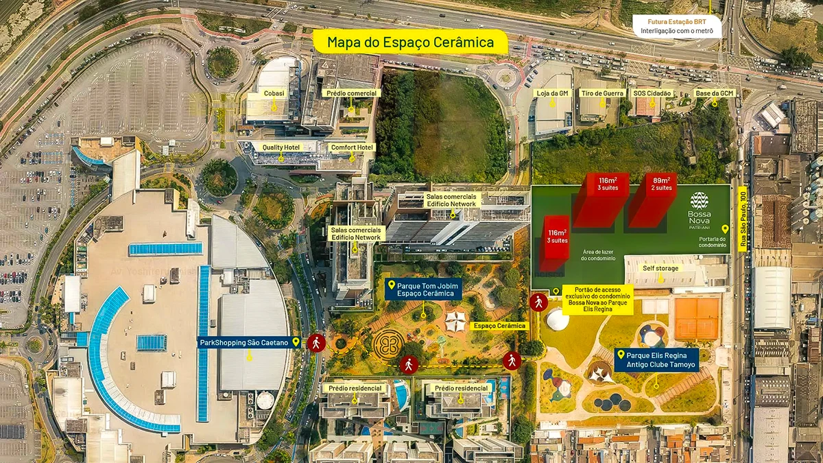 Único condomínio integrado aos Parques Elis Regina e Tom Jobim, com fácil acesso ao ParkShopping São Caetano